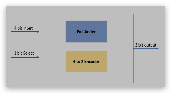 Use 4-bit input. 1-bit SEL decides to output the result of Full Adder or Encoder
