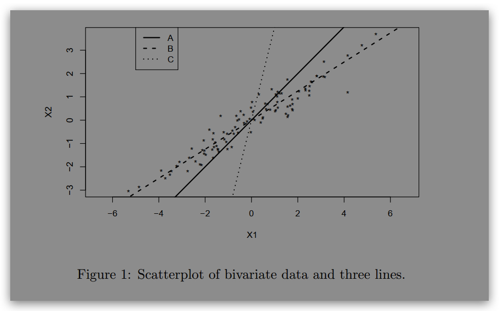 shows the direction of the first principal component of those data. Is it line A, line B or