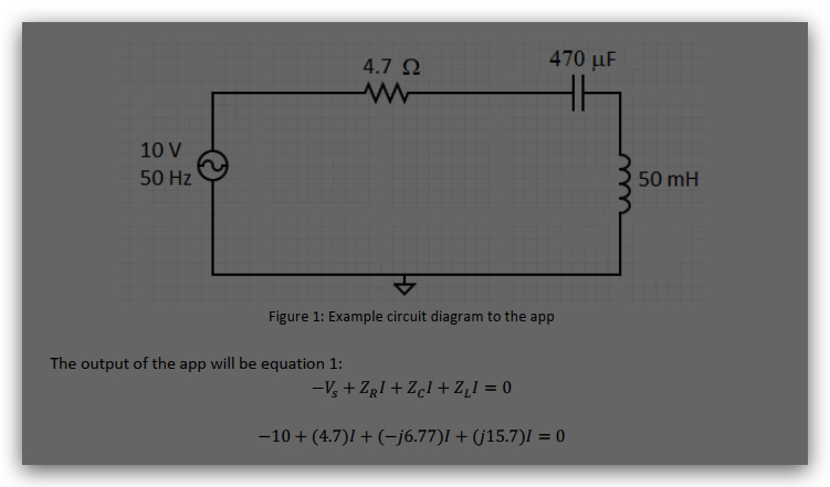Then the application will generate the equation that needs to be solved to compute the current. For example, for the circuit shown in figure 1: