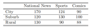 The director of Gainesville Sun newspaper is studying the relationship between the type of community in which a subscriber resides and the section of the newspaper he or she reads fifirst. For a sample of readers, she collected the sample information in the following table: